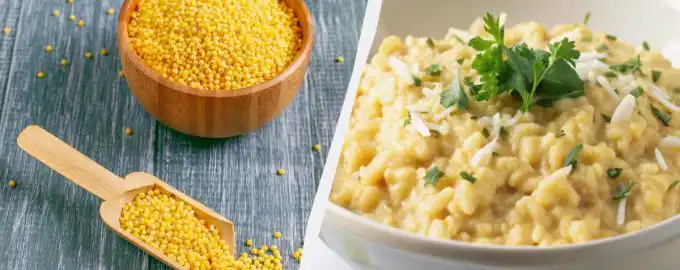 Lekár nám povedal, aká je užitočnosť prosnej kaše a aké má kontraindikácie. Prosná kaša sa vyrába z mletého prosa / Koláž My, foto freepik.